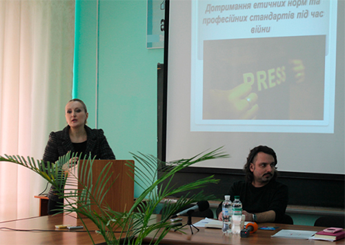 Вона також наводила факти, до речі, на реальних прикладах українських журналістів, як не треба себе поводити працюючи в зоні бойових дій.