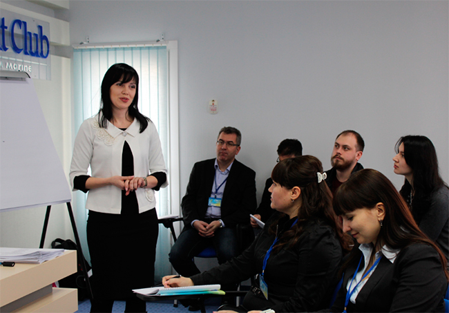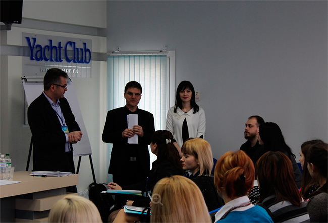 Проводили тренінг професор університету м. Равенсбург Вольфган Фукс, професор університету м. Падерборн В'ячеслав Нікітін та адміністратор готельно-ресторанного комплексу "Бордо" Вікторія Старинська.