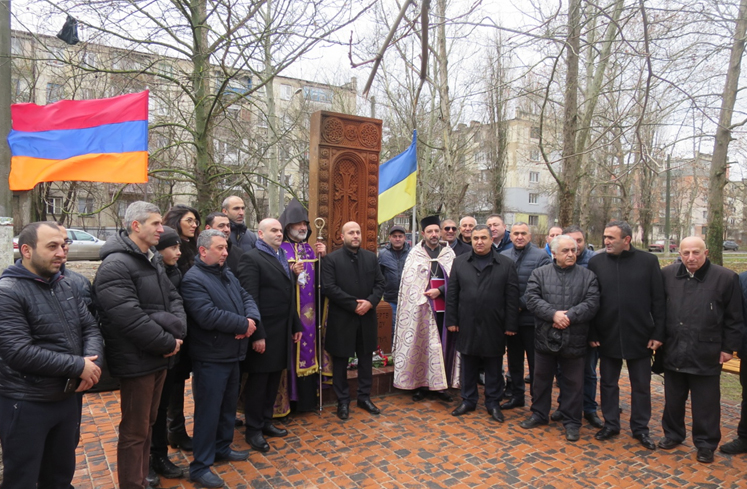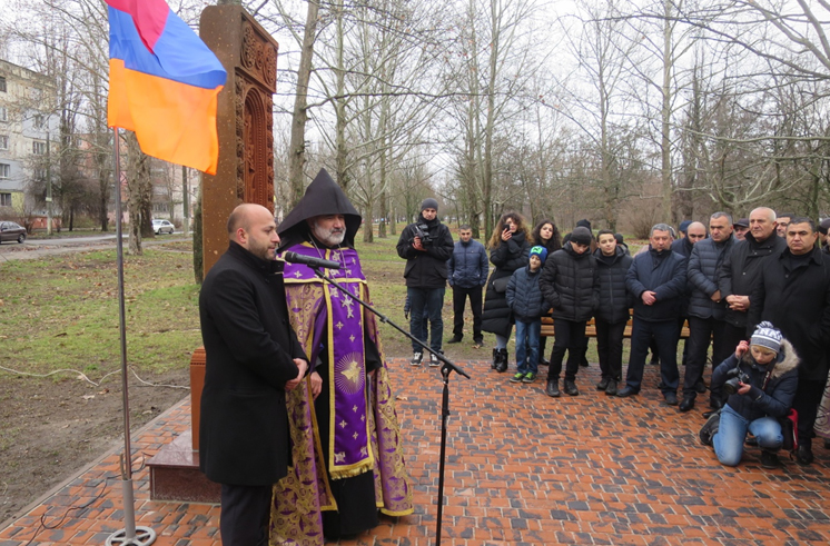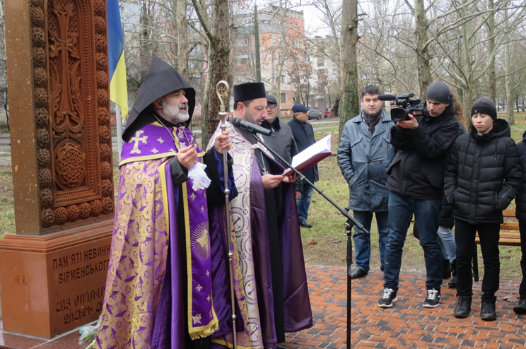 Мероприятие открыл глава Херсонской областной армянской общины Тигран Мкртчян. Он обратился к присутствующим с приветственной речью, поблагодарил центральное руководство Союза армян Украины за помощь и участие в возведении памятной стелы и рассказал о трагических страницах армянской истории.