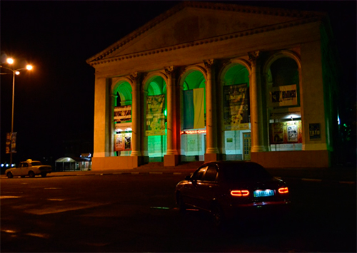 Около четырех часов ночи на воскресенье бдительный дежурный услышал подозрительный шум от черного хода в здание. Выглянув, он обнаружил, что какой-то мужчина со стороны улицы Горького пытается взломать двери, ведущие в мастерские театра.