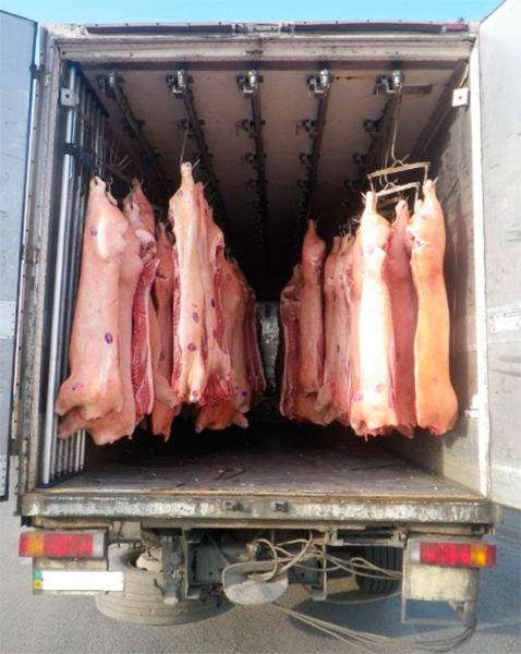 Під час здійснення візуального огляду вантажу та перевірки супровідних документів прикордонники виявили невідповідність вантажу та супровідних документів. Так, згідно ветеринарного свідоцтва (де відсутня ветеринарна печатка) вантаж вивозиться з Дніпропетровської області, проте проставлений штамп Держветнагляду свідчить про походження м'яса з Донецької області.