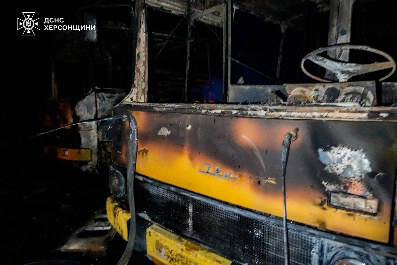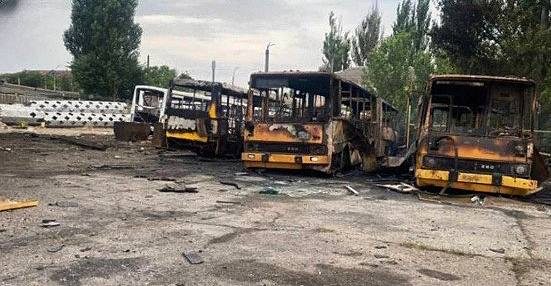 Після ворожої атаки загорілась пошкоджена раніше автотехніка. В результаті згоріло кілька комунальних маршруток та десяток старих списаних «ікарусів». Також ще за двома адресами виникли пожежі на відкритих територіях.