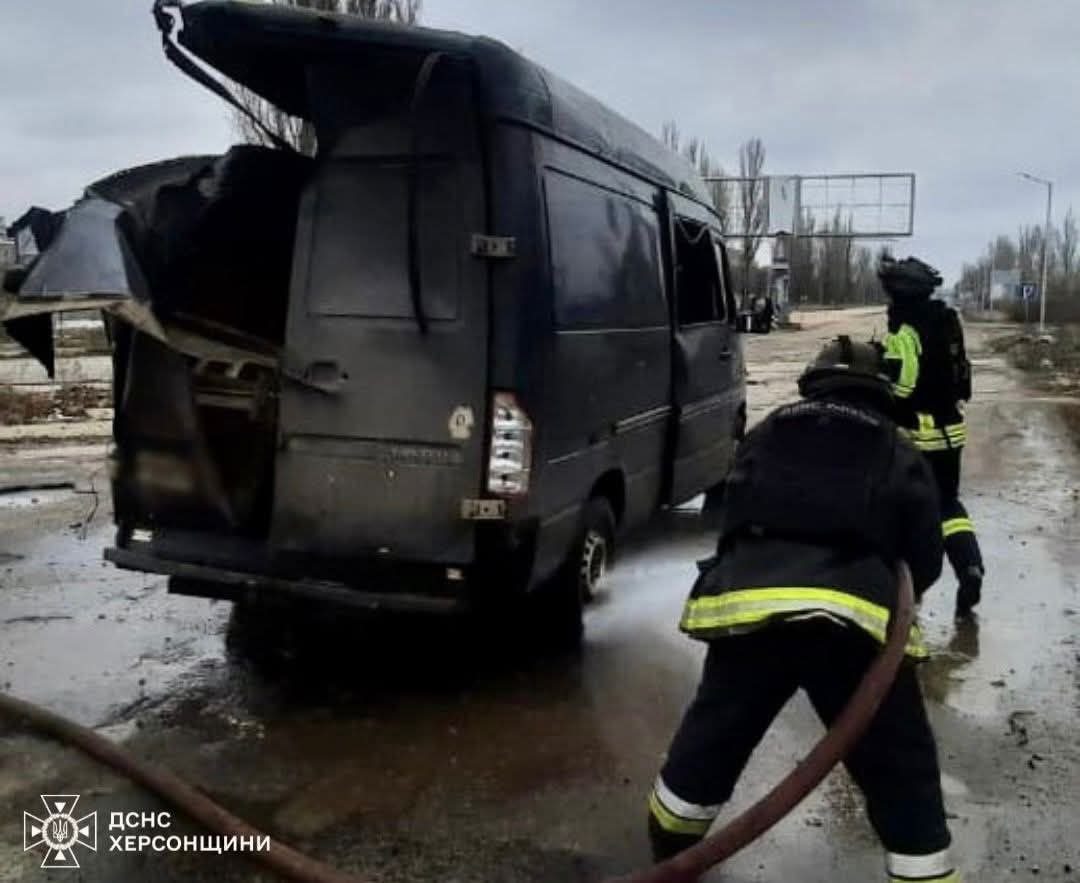 Учора, 5 лютого, російський безпілотник скинув вибуховий пристрій на автомобіль у Херсоні, що спричинило пожежу. На місце події оперативно прибули рятувальники, які швидко ліквідували загоряння.