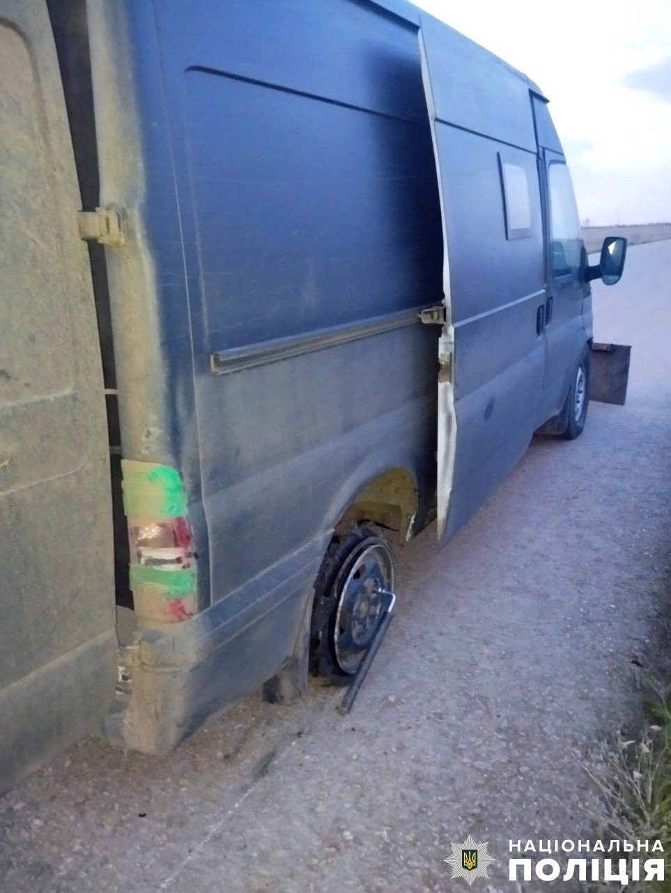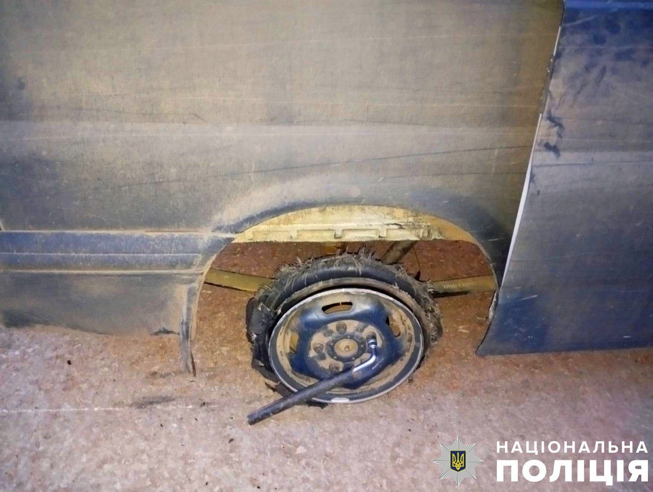Поблизу міста Берислав Херсонської області службовий автомобіль поліції натрапив на ворожу протипіхотну міну. В результаті вибуху було пошкоджено колесо транспортного засобу. На щастя, правоохоронці, які перебували в автомобілі, не зазнали травм.