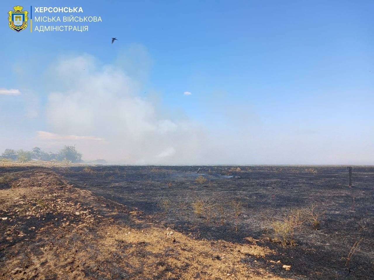 Російські війська продовжують дроновий терор селища Зеленівка Херсонського району. Внаслідок чергових скидів вибухівки з безпілотників спалахнули пожежі — горіли житлові будинки та суха трава.