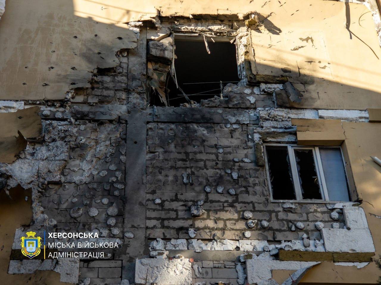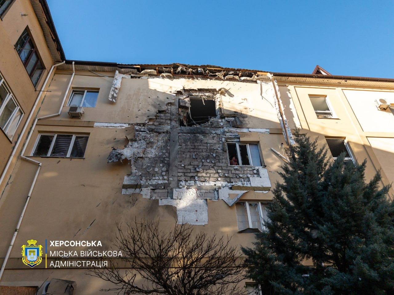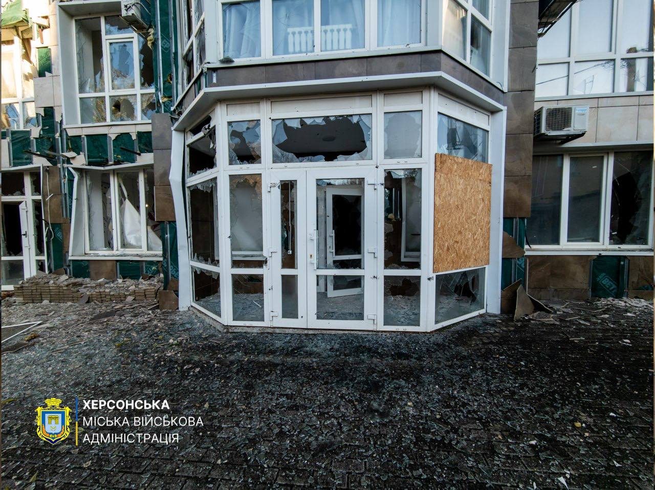 Херсонська міська військова адміністрація оприлюднила світлини з місця події, на яких видно масштаби руйнувань.