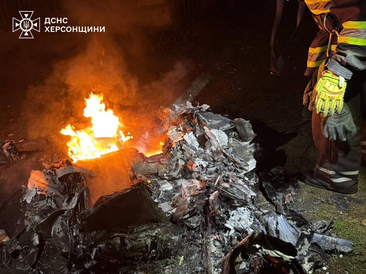 В одному з населених пунктів Бериславського району через падіння уламків дрона на територію приватного домоволодіння спалахнуло загоряння.