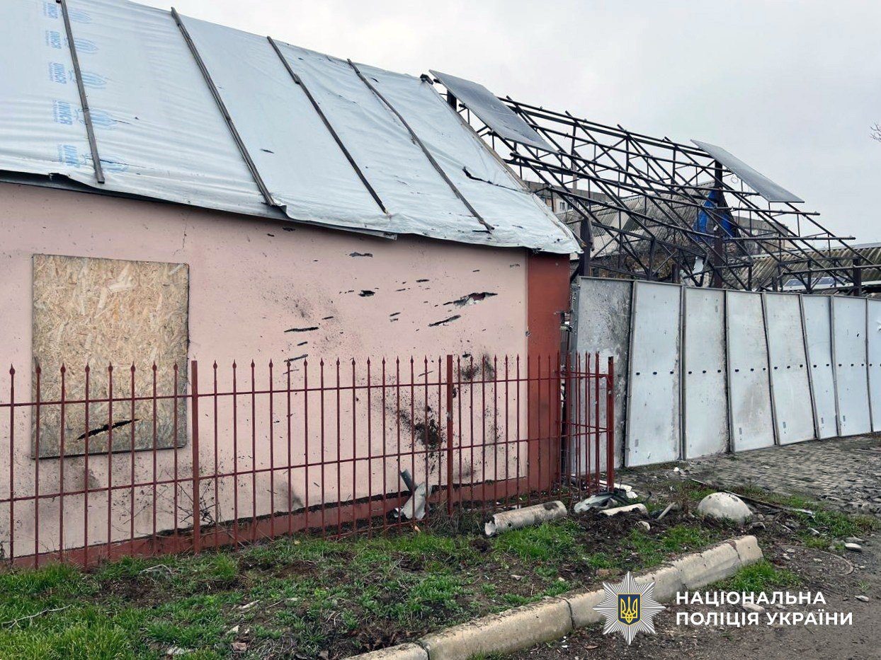 Протягом дня удари також накривали Дніпровський район Херсона. Там поранено 46-річного чоловіка - він зазнав мінно-вибухової травми та уламкового поранення голови. Пошкоджено навчальний заклад, два багатоквартирних будинки, 13 приватних осель, гаражі, майстерню та літні кухні.
