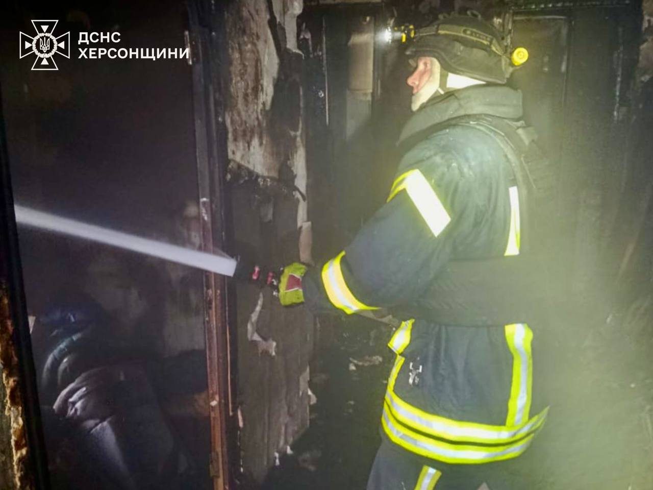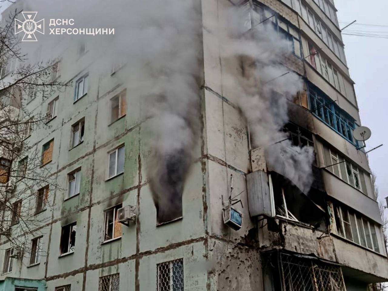 Уранці 21 грудня російські війська вкотре обстріляли Херсон. Внаслідок ворожої атаки в мікрорайоні Корабел виникла пожежа у квартирі на другому поверсі багатоповерхового житлового будинку.