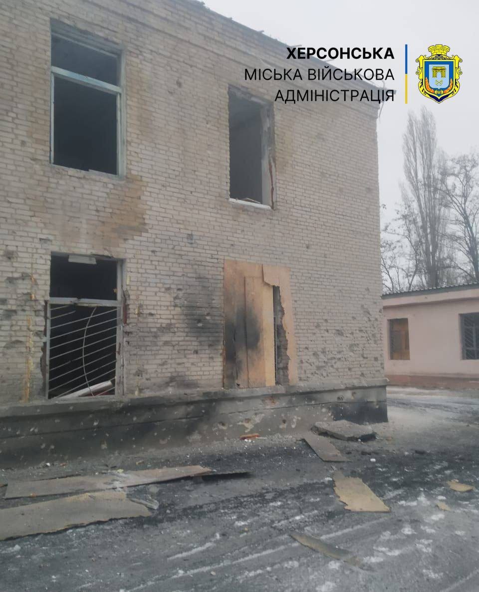 Внаслідок атаки зафіксовано прямі влучання снарядів у будівлі, вибито вікна та пошкоджено дорожнє покриття. Інформації про постраждалих немає. Дані підтвердили в Херсонській МВА.
