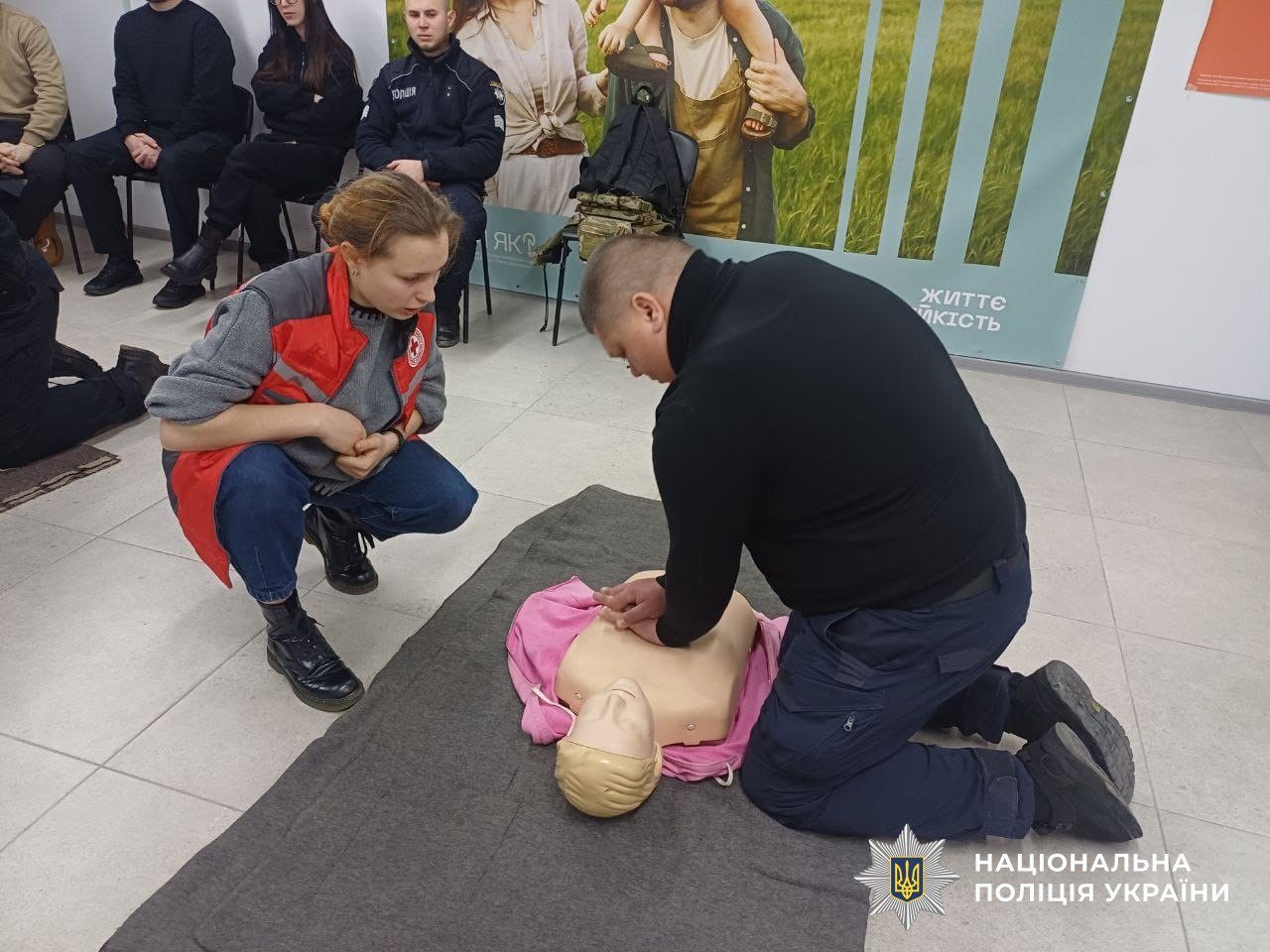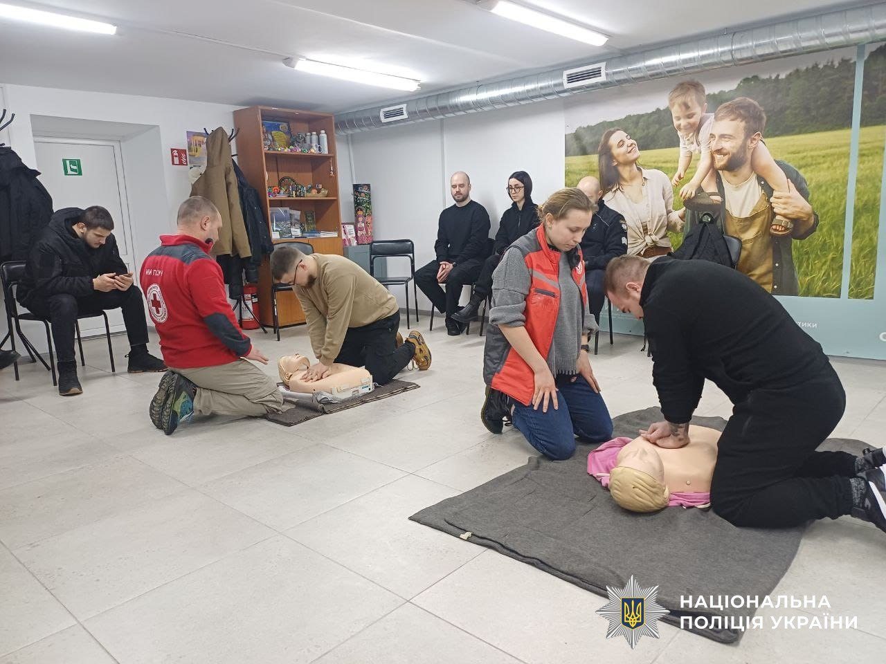Тренінги проводяться у безпечному просторі за участі представників Товариства Червоного Хреста України. Поліцейські відпрацьовують алгоритми дій під час масованих обстрілів, навчаються зупиняти критичні кровотечі, застосовувати турнікети, проводити серцево-легеневу реанімацію, евакуювати поранених і діяти злагоджено в команді.