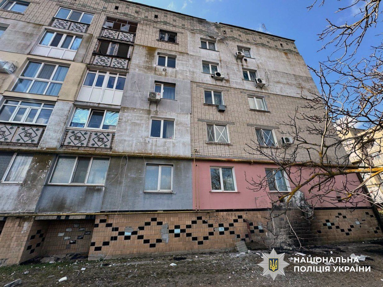 Вранці FPV-дрон атакував Центральний район Херсона. Постраждали двоє працівників Управління поліції охорони віком 21 та 30 років. Молодший поліцейський отримав мінно-вибухову травму та контузію. Його колегу госпіталізували з вибуховою травмою, уламковими пораненнями обличчя і кінцівок, а також численними переломами.
