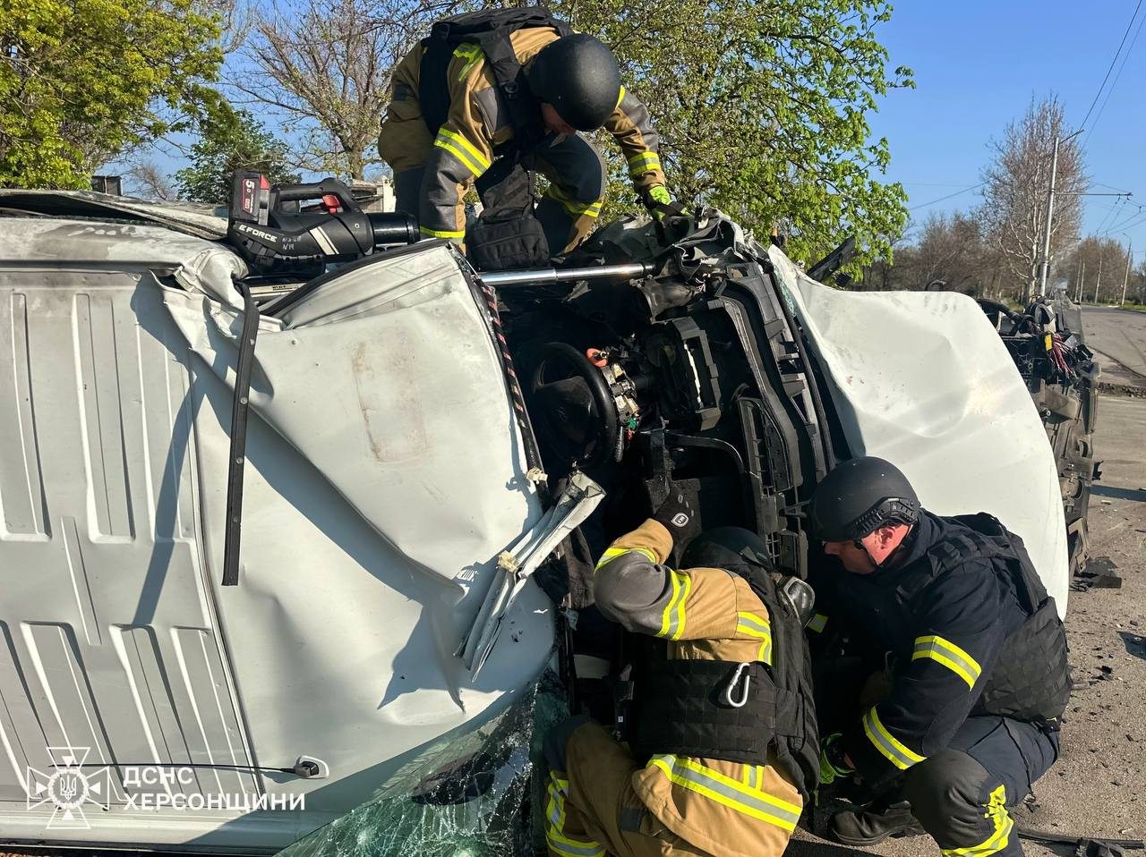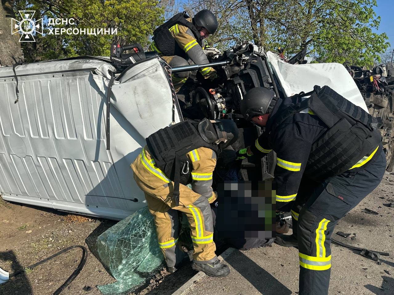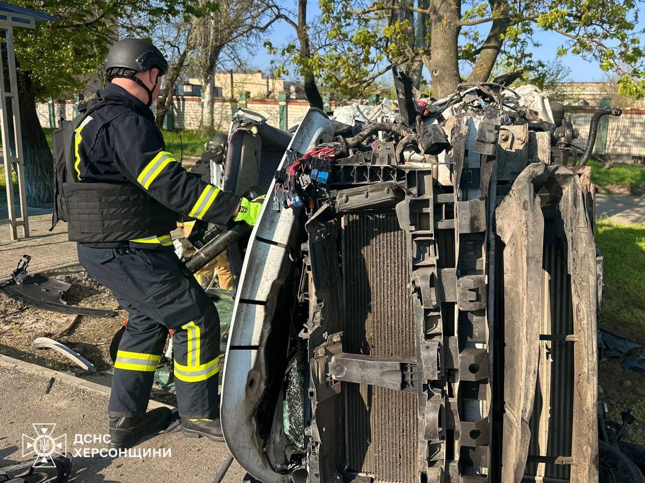 Уранці 19 квітня російські війська атакували безпілотником автомобіль у Центральному районі Херсона. Удар стався близько 07:00 на Миколаївському шосе.