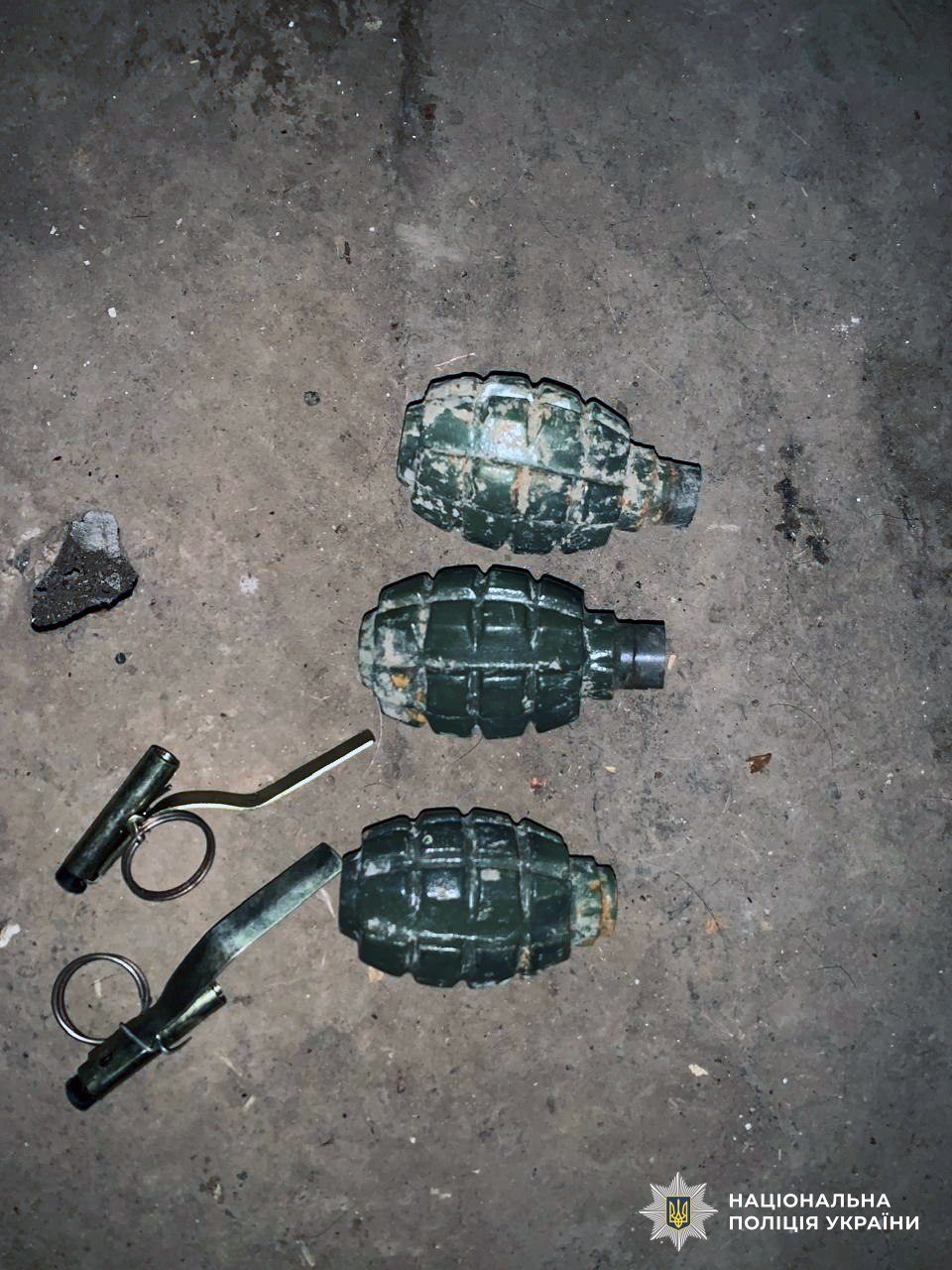 Під час невідкладного обшуку в його домоволодінні правоохоронці виявили арсенал боєприпасів: три гранати Ф-1, одну гранату РГО та два підривачі, які вилучили.