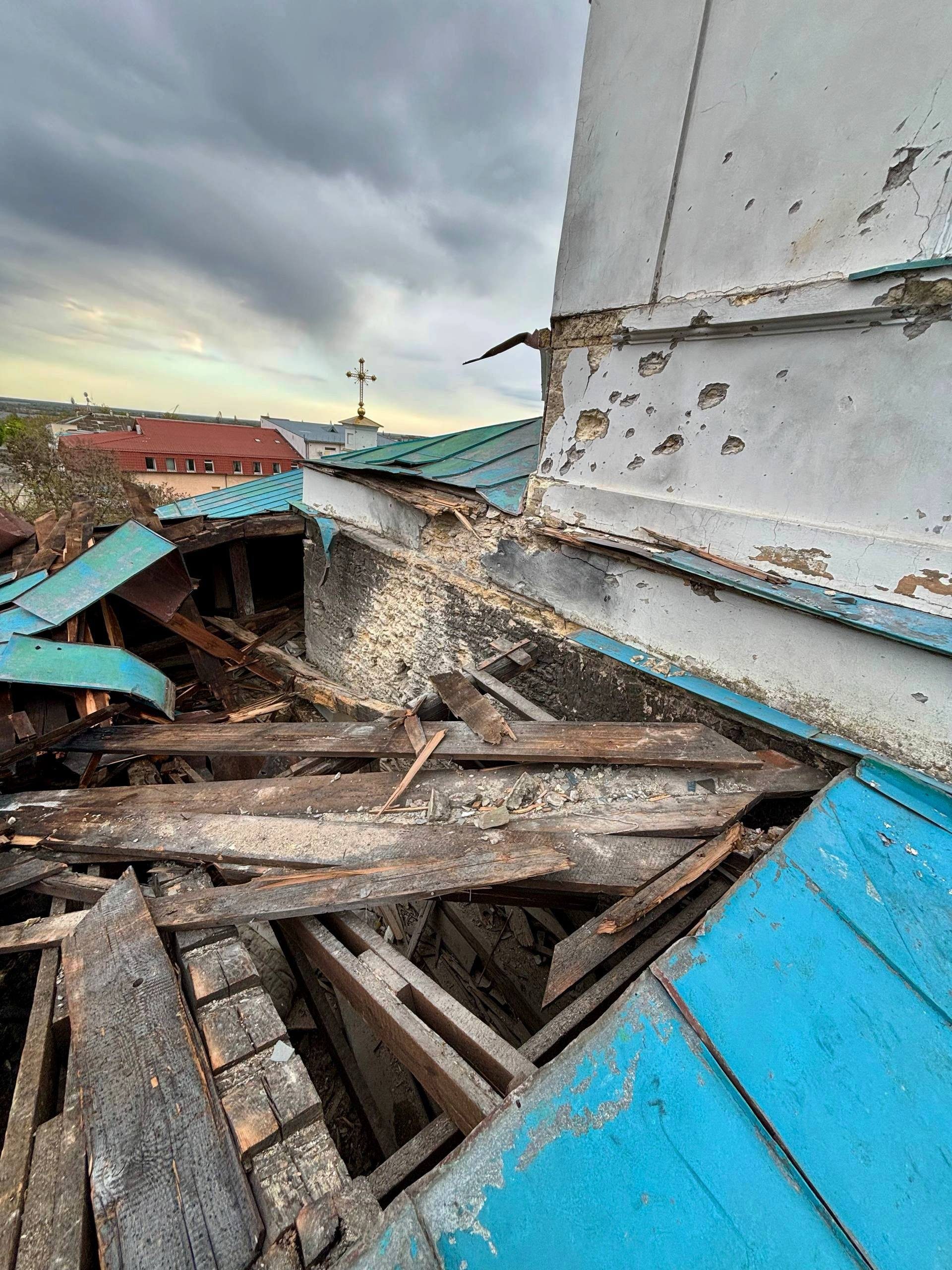 Окрім собору, серйозно постраждала й розташована поруч нежитлова будівля - вона фактично вигоріла внаслідок обстрілу.