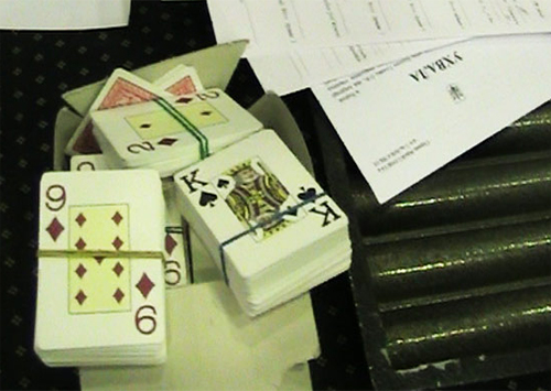 На час візиту правоохоронців гра була у самому розпалі. Коли клієнти побачили працівників міліції, то намагалися видати гру за тематичну вечірку у тісному колі друзів, а фішки та карти - за сувенірні.