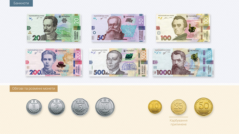 Основные изображения нынешних банкнот 50 и 200 гривен (Михаил Грушевский и Леся Украинка) сохранятся. Новые банкноты также будут иметь аналогичные размеры и подобную цветовую гамму.