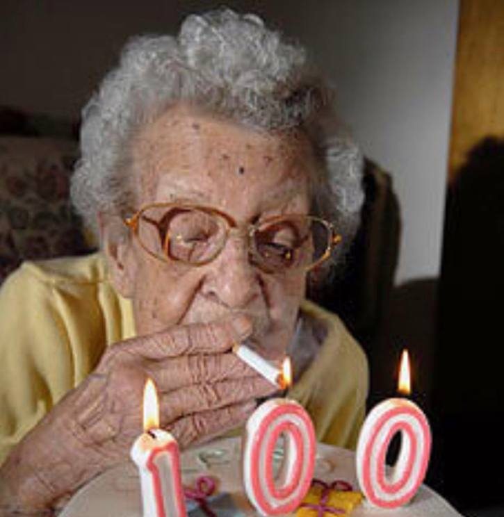 Перша людина про яку ми поговоримо це Жанна Кальман . Вона прожила майже 123 роки і це була офіційно найстаріша людина на землі, вік якої був підтверджено офіціально . Тож давайте подивимось який секрет довголіття від Жанни . Жанна не вела здоровий спосіб життя. І палила майже 95 років . Кинувши це діло лише в 117 років і то тільки по причині втрати зору , бо їй неможливо було прикурити самій . Крім паління Жанна любила регулярно вживати вино та шоколад в кількості майже по кг на тиждень . Справжня француженка. Але в той же час Жанна активно займалася спортом . Майже до ста років їздила на велосипеді, займалася фехтуванням, також за її словами, завжди позитивно відносилась до життя . Цікавий рецепт довголіття . Йдемо далі .