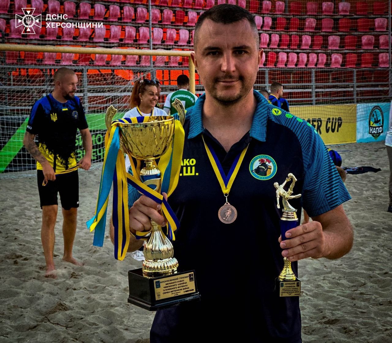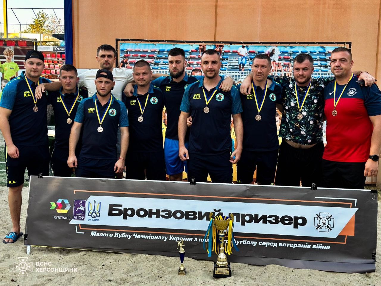У Києві відбувся перший Чемпіонат України з пляжного футболу серед ветеранів війни 2025 року. Команда херсонських рятувальників продемонструвала справжній командний дух і завзятість: вони пройшли серію напружених ігор і до останнього боролися за перемогу.