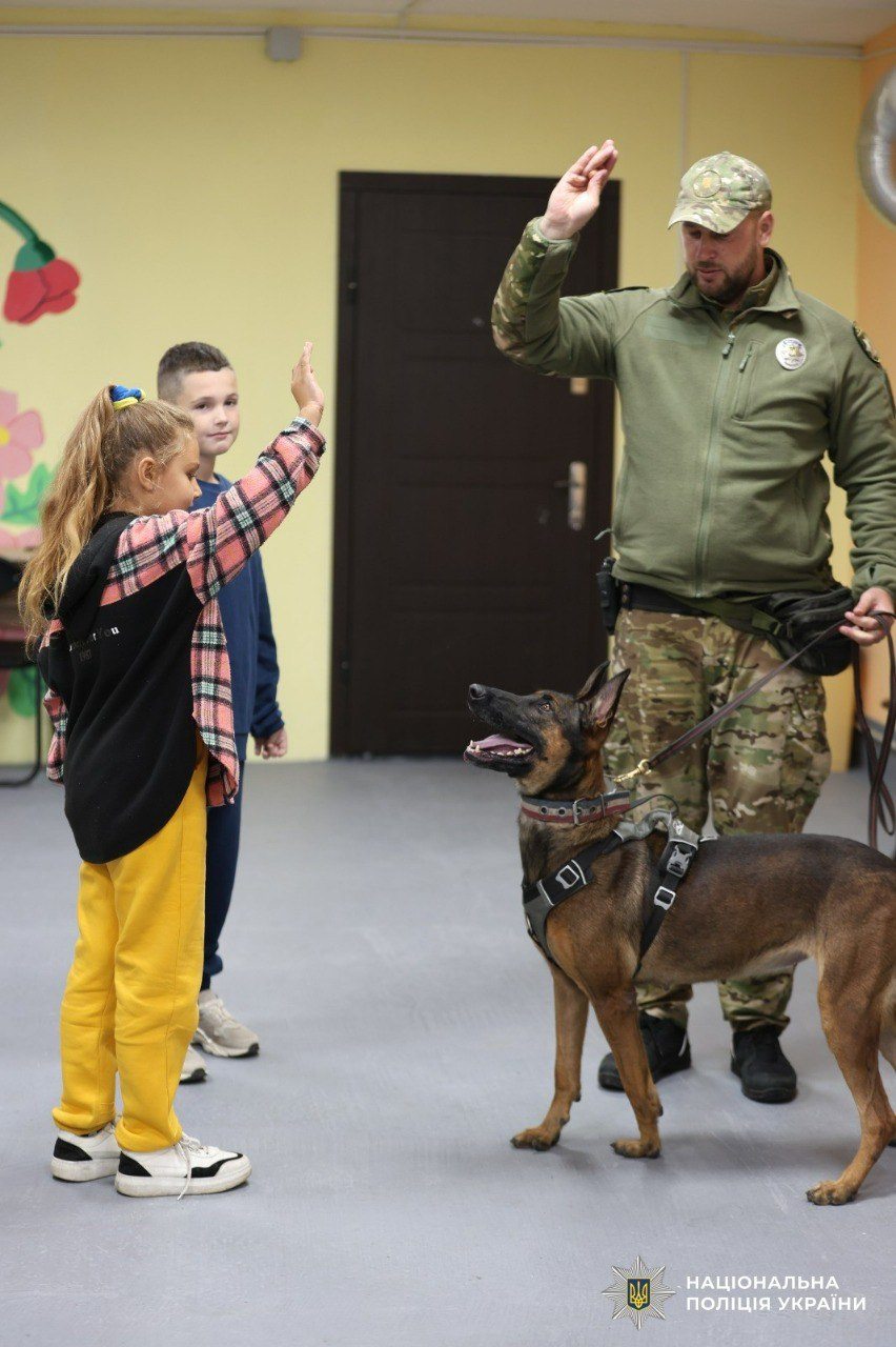 Під час зустрічі правоохоронці розповіли дітям про важливість турботи про тварин, правила догляду за домашніми улюбленцями та відповідальність за жорстоке поводження з ними. Кінологи продемонстрували основи дресирування, а діти самостійно давали собакам прості команди.