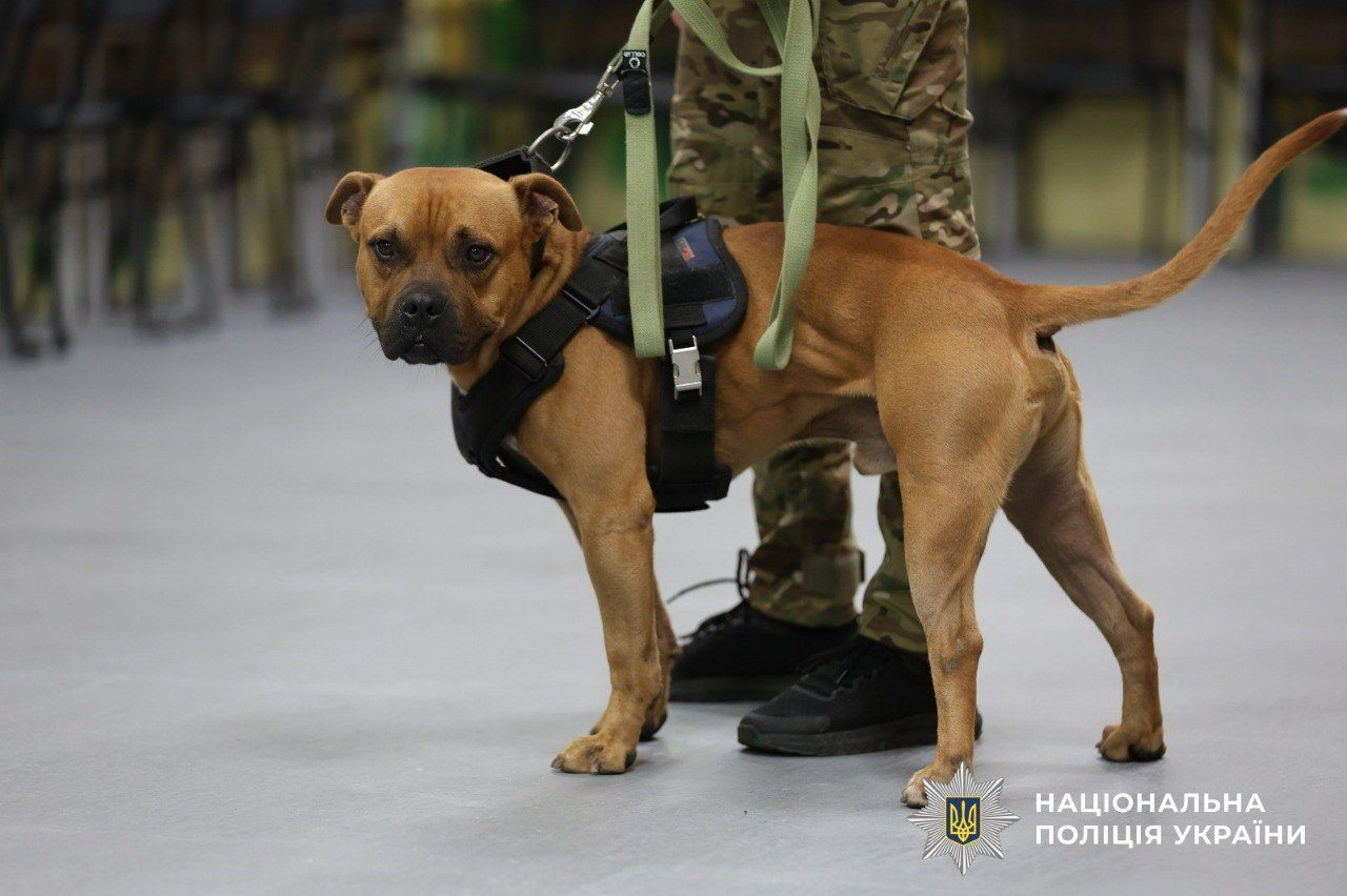 Поліцейські ювенальної превенції завітали до малечі зі своїми службовими собаками Келлі та Джексоном. Келлі спеціалізується на пошуку наркотичних речовин, а Джексон допомагає у психоемоційній підтримці поранених військових.