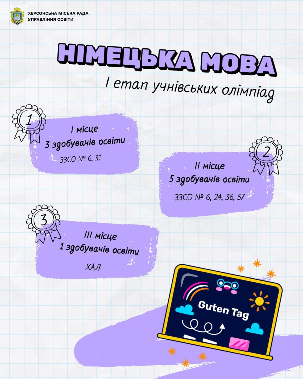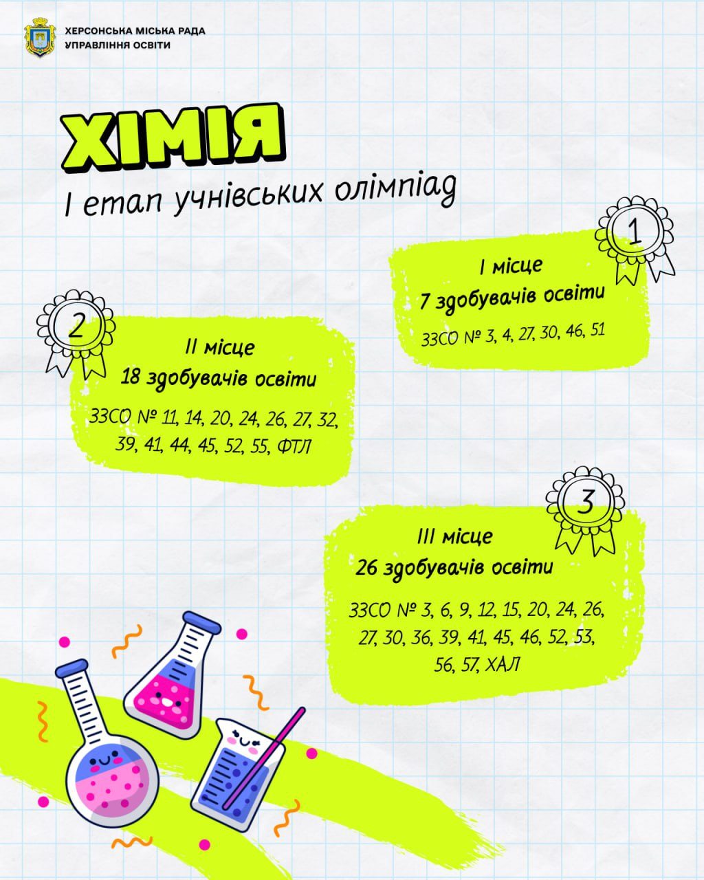 У закладах освіти Херсонської міської територіальної громади завершився І етап Всеукраїнських учнівських олімпіад з хімії, іноземних мов та інформатики.