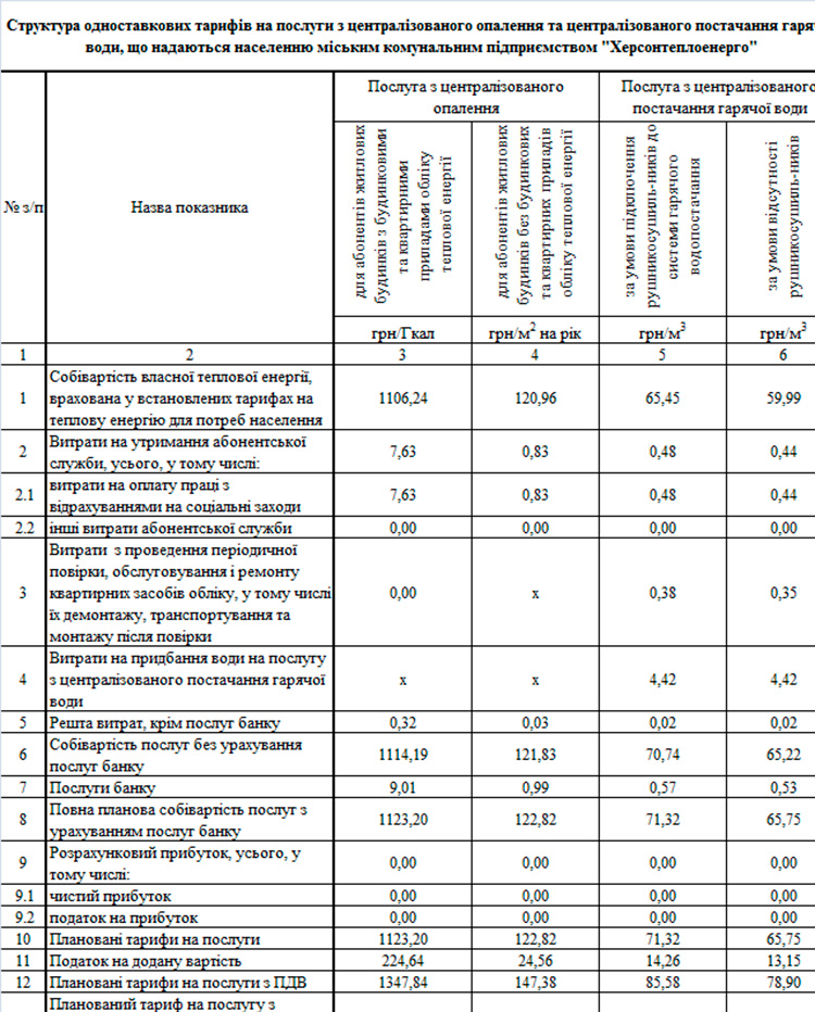 У таблицях наводимо повні дані з чого складається та сама ціна, яку ми з вами будемо платити.