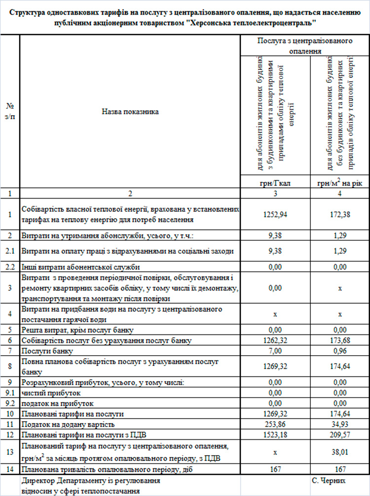 У таблиці № 3 наведений розрахунок тарифів для публічного акціонерного товариства «Херсонська теплоелектроцентраль».