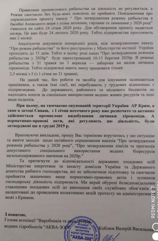 Ситуацію накаляє і той факт, що по сусідству на території окупованого Криму ліміти на вилов вже затвердили і з 1 січня кримські рибалки працюють в затоці Сиваш, а наші з Чонгара все це бачать, заздрять та сидять без роботи.