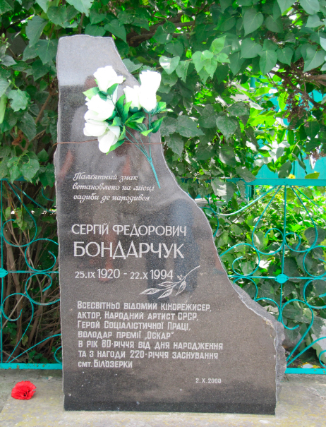 Земляки - білозерці шанують пам'ять про свого великого земляка: з нагоди 90-річчя Сергія БОНДАРЧУКА його ім'я присвоїли місцевому Будинку культури, у Білозерці встановлено також пам'ятну стелу.