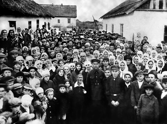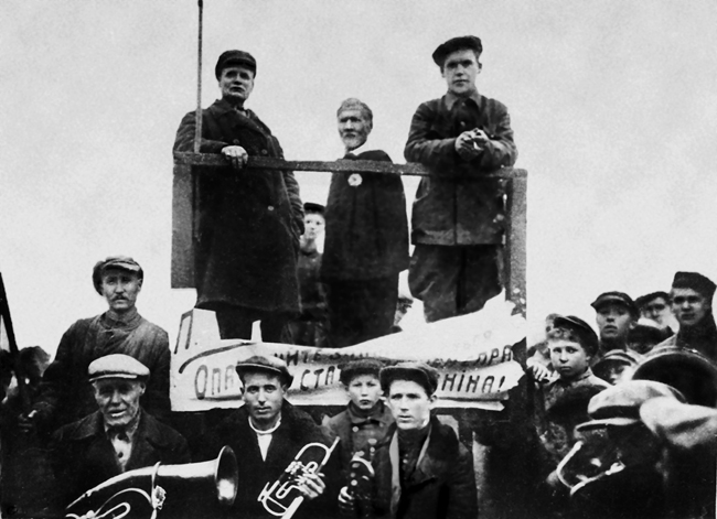 Виступ художника Гната Прокоповича Шила (у центрі) на мітингу з нагоди відкриття у с. Британи художньої студії (1937р.)