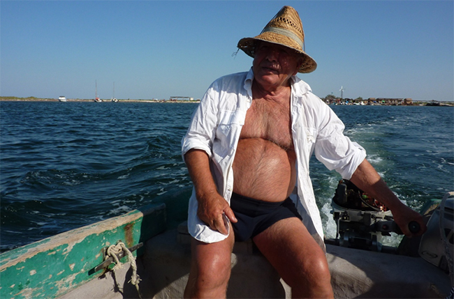 На снимках: местные рыбаки возвратились с утренним уловом; скадовчанин Василий Знахаренко вышел рыбачить на ската; пляжи и камышовые домики острова Джарылгач