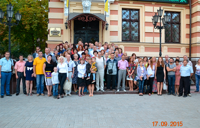 В Херсоне около семидесяти сотрудников областного управления НБУ собрались прямо у своего офиса по улице Перекопской на акцию «Единства» по инициативе ведомственного профсоюза. Этих сотрудников руководство Нацбанка планирует выбросить на улицу по сокращению штата. А они решили сфотографироваться вместе со своими детьми, и отправить коллективное фото главе НБУ Валерии Гонтаревой – чтобы она знала в лицо тех, кого именно оставляет без куска хлеба.