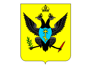 - на золотом поле щита изображался черный, двуглавый, коронованный орел, который в правой лапе держал лавровую ветвь, а в левой пламя.