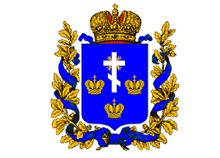 «В лазуревом щите, серебряный русский крест, с сиянием в четырех верхних углах, сопровождаемый по бокам и снизу тремя золотыми императорскими коронами.