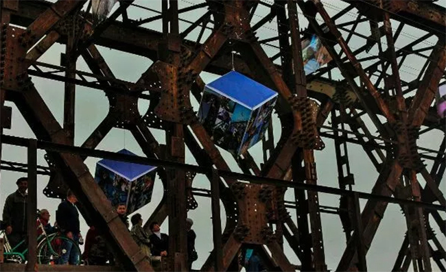 Фишкой презентации стали два огромных куба с распечатанными фотографиями всех участников конкурса, подвешенные в проемах моста. Успех был невероятный.
