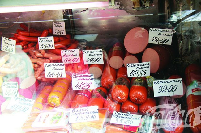Многие хозяйки знают, что в магазине вареная колбаса высшего сорта стоит 75–100 гривен за кило. Качественная колбаса вряд ли может стоить дешевле мяса, цена которого на сегодня – не дешевле 70 гривен. А для производства дешёвой колбасы в фарш идут «ухо, горло, нос, сися... хвост». В фарш бросают измельчённые шкуру и кости, потроха, манку, крахмал и различные химические добавки. Одно время покупатели даже подшучивали, что дешевую колбасу делают из туалетной бумаги.