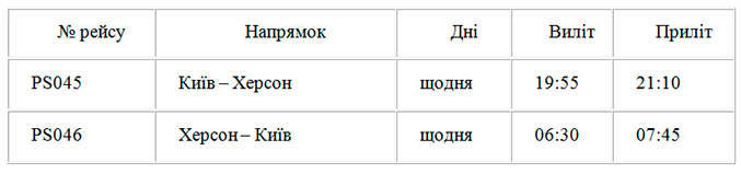 P.S. Польоти будуть здійснюватися за таким розкладом: