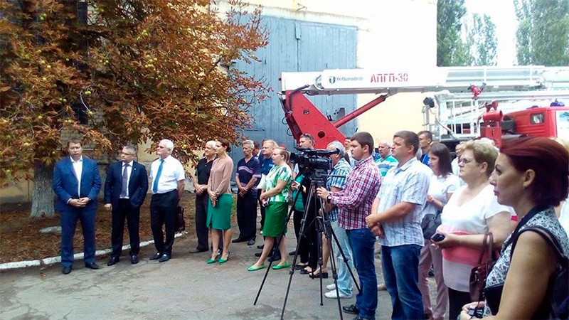 ...Разом з керівником державного концерну Державний концерн "Укроборонпром" Романом Романовим, головою Херсонської облдержадміністрації Андрієм Гордєєвим, секретарем Херсонської міської ради Оленою Урсуленко привітали колектив державного підприємства «Судмаш» з Днем Незалежності та випуском нового інноваційного 30-метрового пожежного автопідйомника, що стане незамінним в роботі МНС. Це – результат успішної співпраці підприємства з «Укроборонпромом».