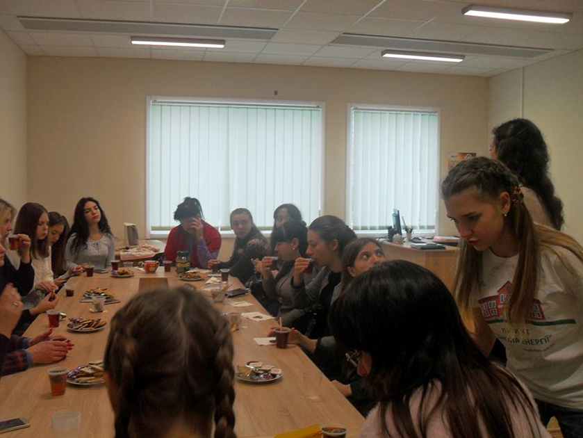Учасників олімпіади із Миколаєва, Запоріжжя та Кіровограду тепло і щиро вітали учні Антоніаської 21 "Зеленої школи", команда енергомнеджерів. Учнів привітала директор школи Галина Лугова, здійснили екскурсію навчальним закладом, провели тренінг "Знайомство" під час чаювання.