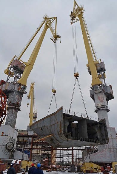 «Мы впервые понимаем массу 160 тонн, крановое оборудование работало на максимальной нагрузке, но мы тщательно готовились и все прошло отлично», - сказал главный технолог верфи Олег Купянский.