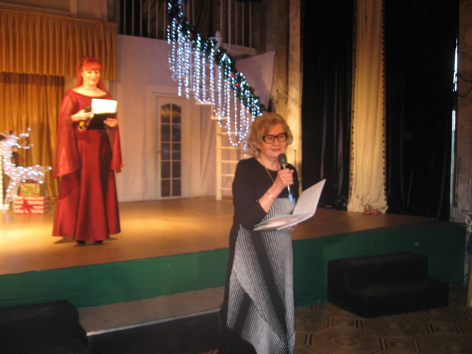 На початку ведучі зборів та колядники, актори театру, привітали ветеранів та гостей із наступаючим святами.