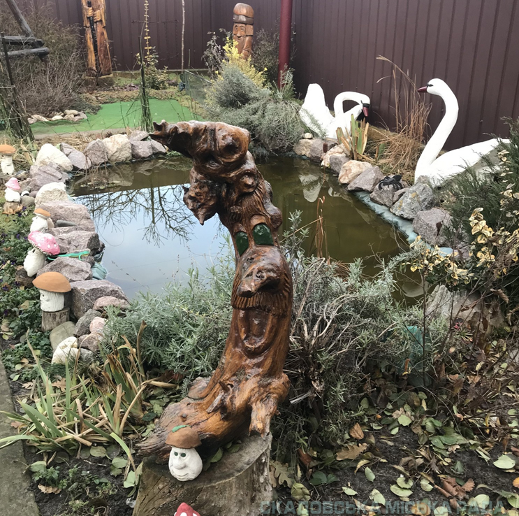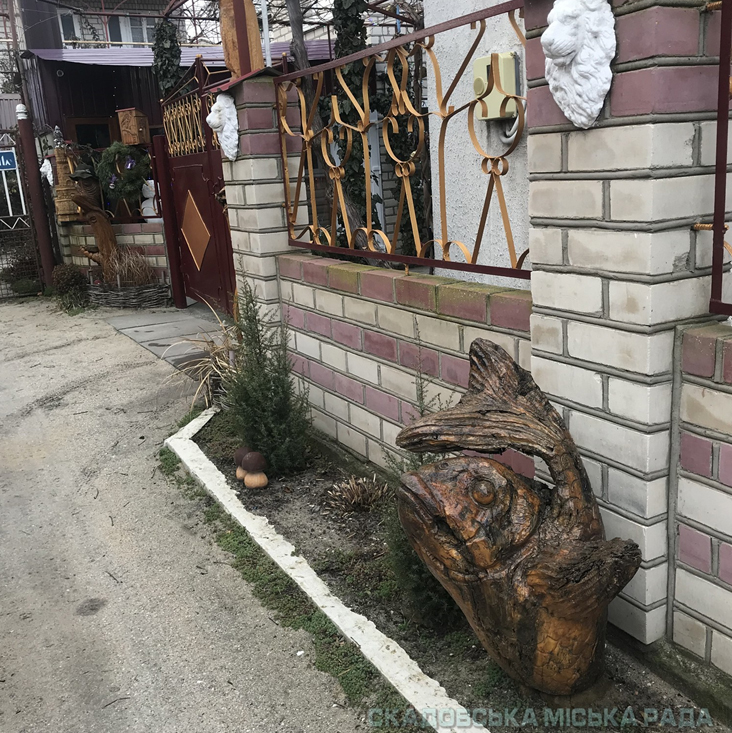 Цих казкових героїв створює з дерева скадовчанин Олександр Янчук. Кожен куточок подвір'я майстра має власного персонажа.