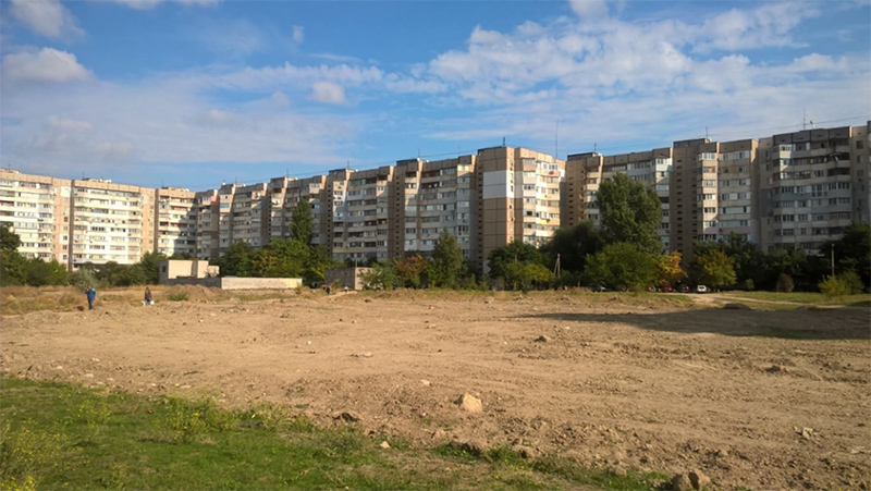 На наступному фото гарно видно межі і фундаменти зруйнованої міськвиконкомом школи, нове будівництво та весь мікрорайон.
