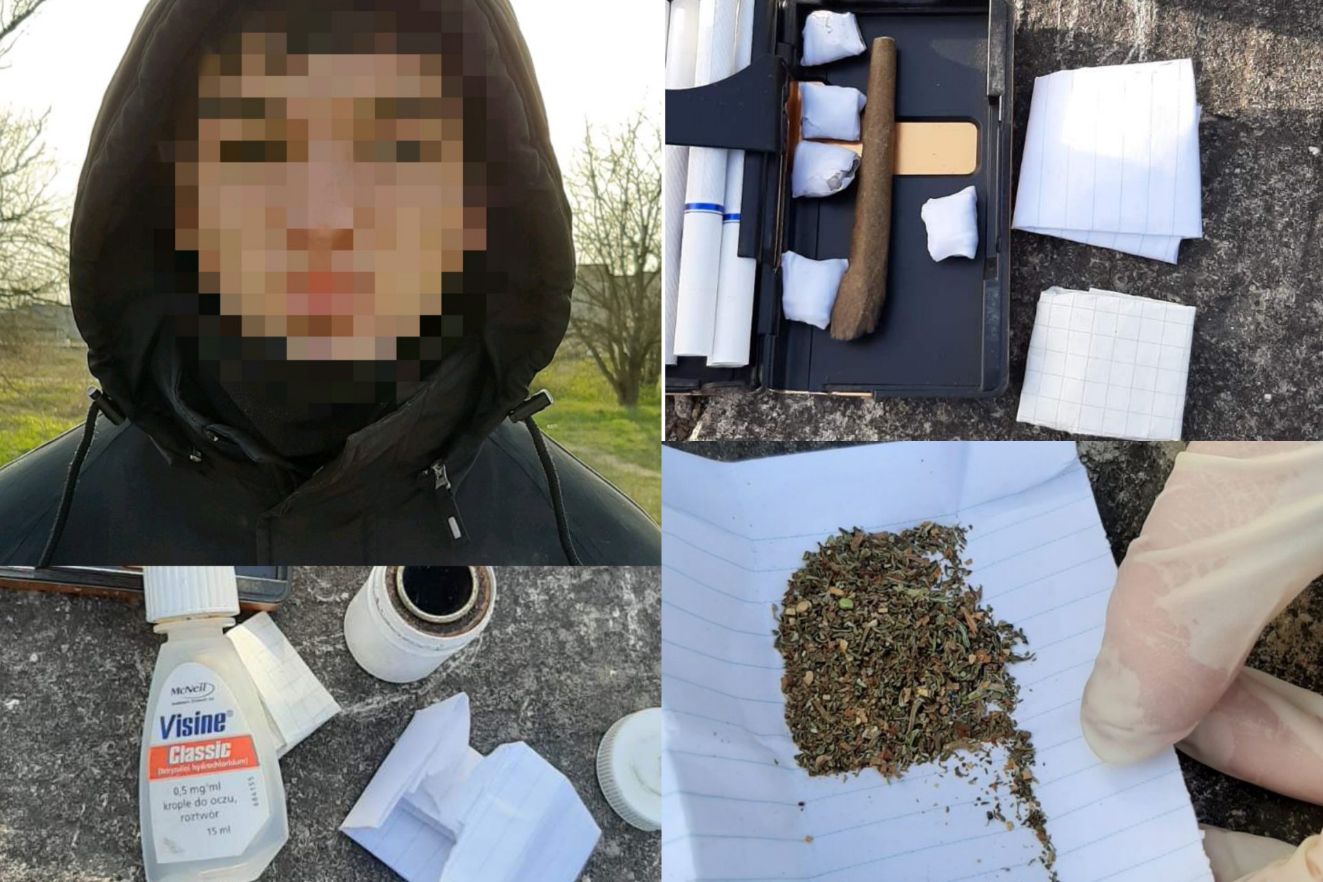 Окрім того, він мав пристрій для вироблення саморобних цигарок та препарат для очей, яким можна прибрати з них явні сліди наркотичного сп'яніння.