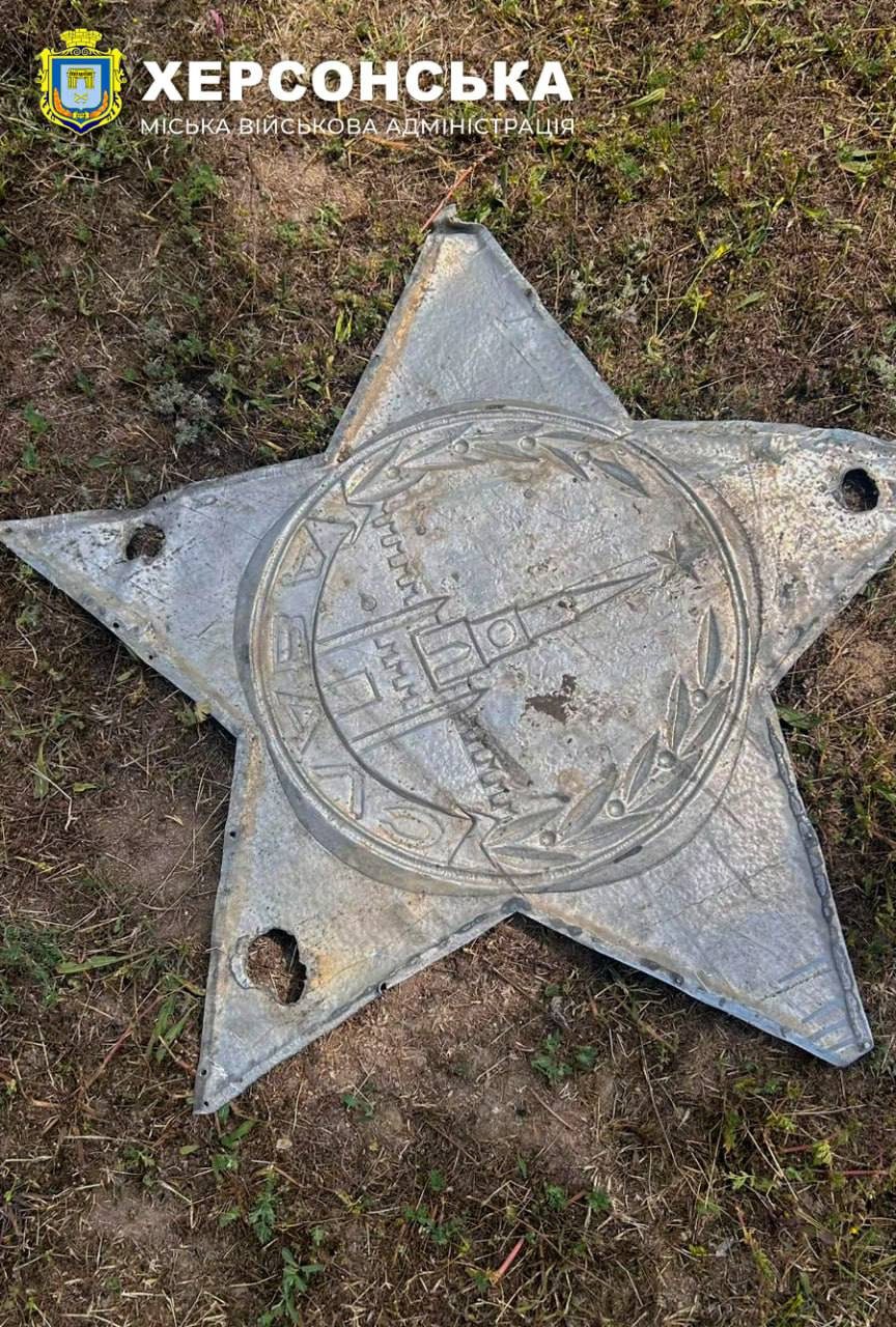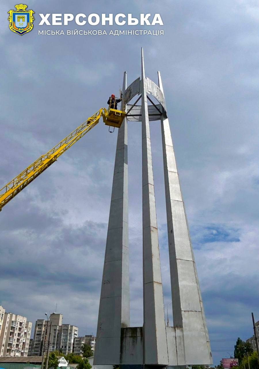 Херсон продовжує позбавлятися залишків комуністичного минулого. На площі 200-річчя міста працівники КП "Парки Херсона" та Херсонського водоканалу демонтували п’ятикутну зірку із зображенням серпа і молота, яка прикрашала монумент радянської доби "Три багнети".