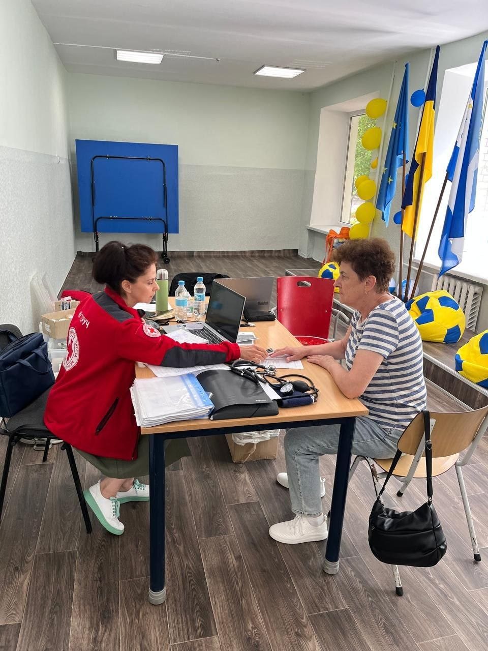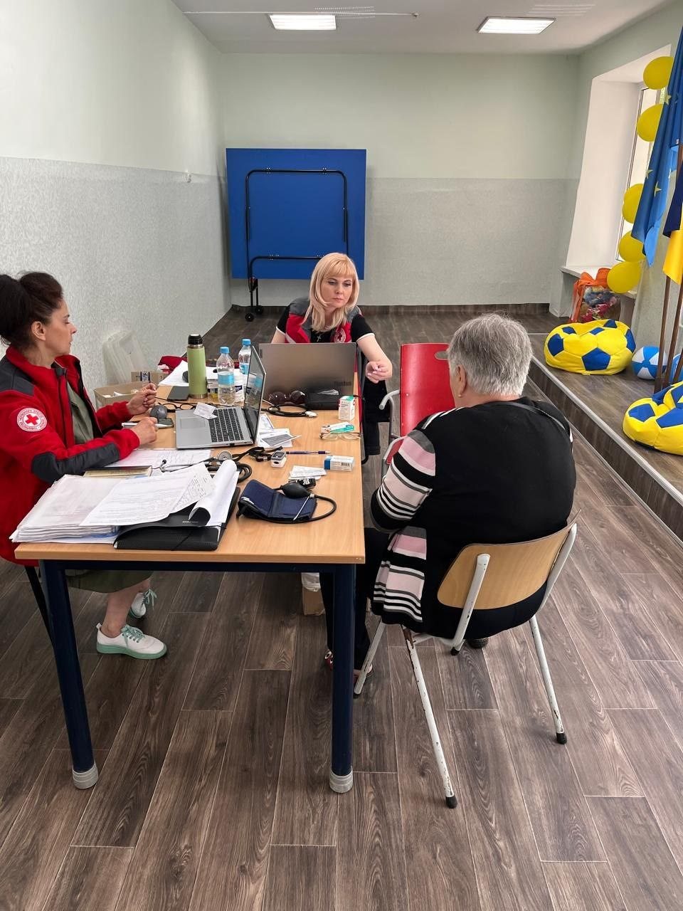 У Хмельницькому на базі гуманітарного офісу "Вільні Разом" відбувся виїзний прийом мобільної бригади Товариства Червоного Хреста України для переселенців з Херсонщини.