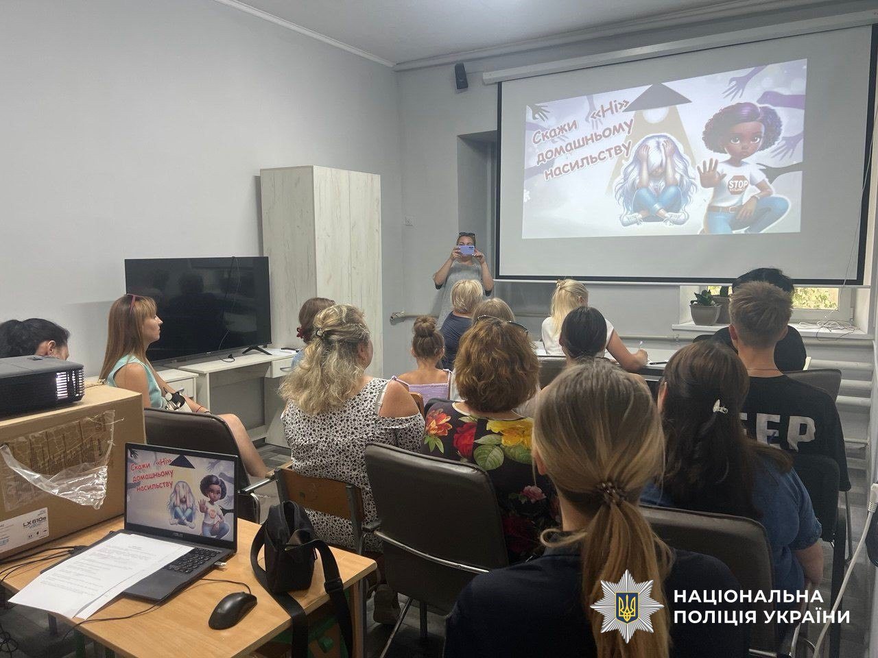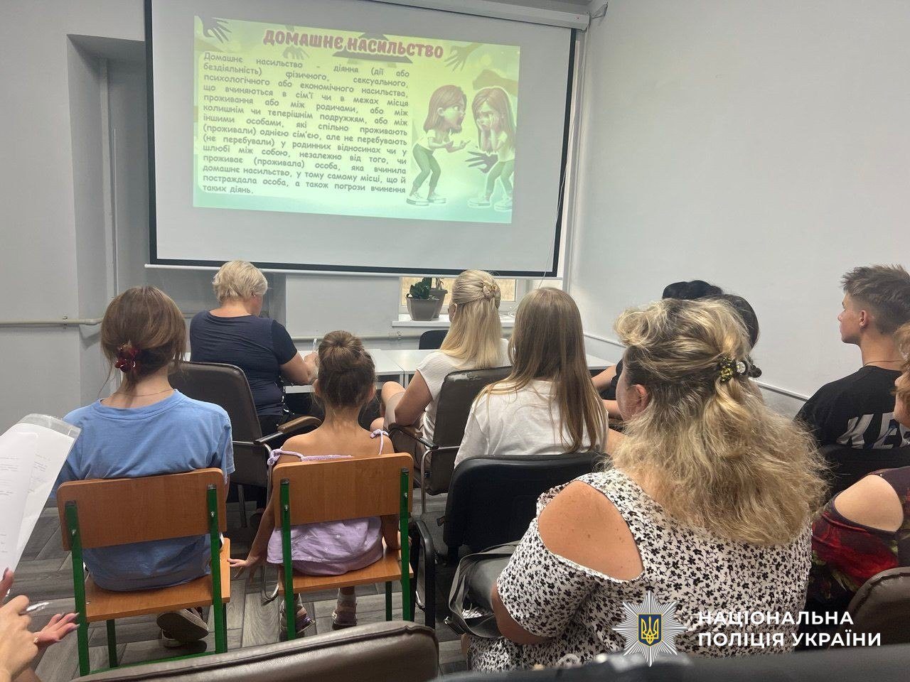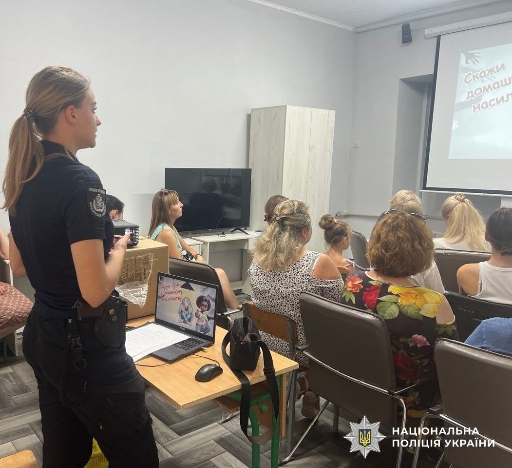 Під час заходу правоохоронці пояснили, що таке домашнє насильство, які його види та як розпізнати перші ознаки. Особливу увагу приділили алгоритму дій у разі загрози, а також розповіли, куди можуть звертатися постраждалі – до поліції, соціальних служб або на спеціальні «гарячі лінії».