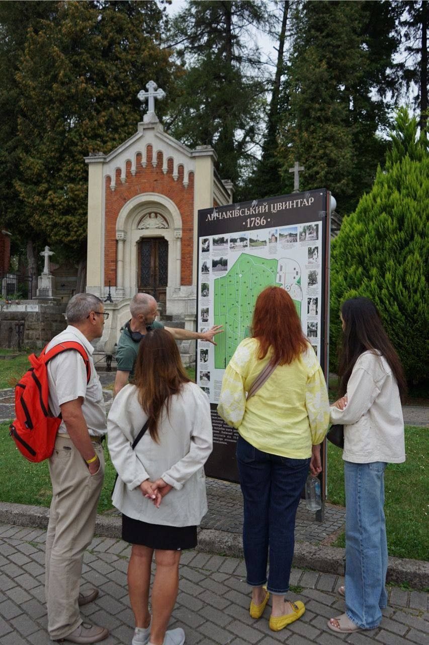 Першим місцем став Личаківський цвинтар - один із найвідоміших меморіальних комплексів України. Херсонці ознайомилися з підходами до збереження поховань і догляду за територією, а також вшанували пам’ять українських воїнів у Меморіальному комплексі Героїв України.