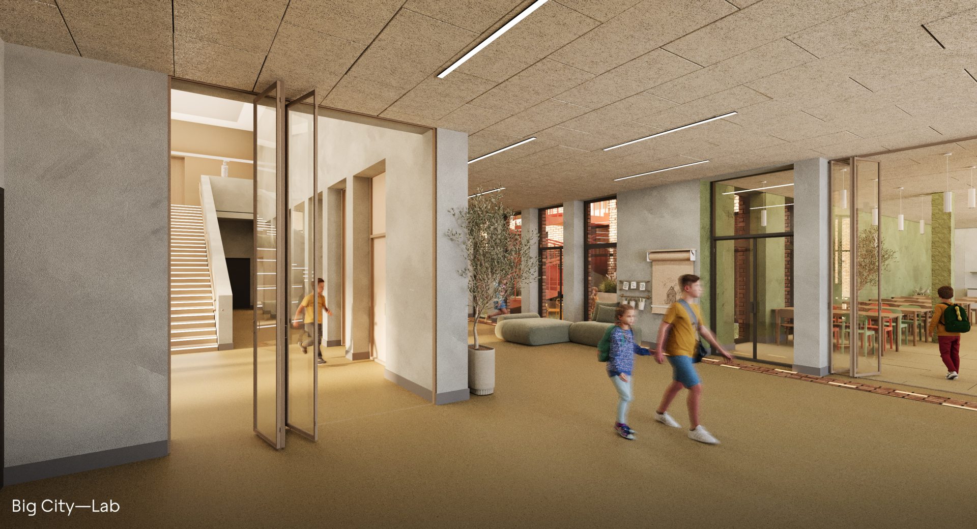 Увесь простір спроєктований довкола потреб дитини. Навчання школярів відбуватиметься через практику та дослідження — завдяки природничій лабораторії, технологічному класу та кабінету інформатики. А одномісні парти дозволять легко і швидко змінювати розсадку: замість того, щоб дивитися одне одному в потилиці, учні зможуть працювати в групах чи у великому колі.